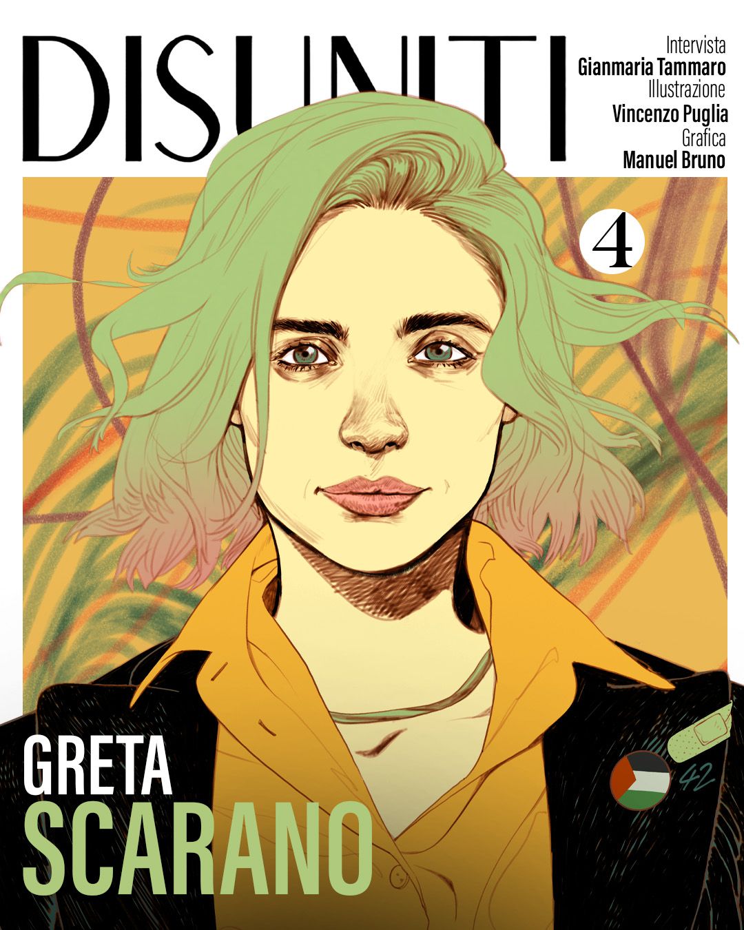 Anche questa volta, in occasione dell’uscita del nuovo episodio di Disuniti, ho chiesto a un disegnatore di realizzare un’illustrazione dell’ospite. Vincenzo Puglia ha fatto un ottimo lavoro ritraendo Greta Scarano. Ha inserito elementi specifici e allo stesso tempo – cosa che per me è sempre stata importante – ha mantenuto il suo stile.
