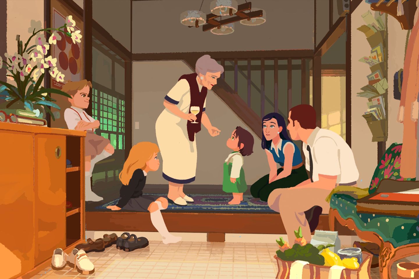 La piccola Amélie racconta sostanzialmente la storia di una bambina: dalla sua nascita al momento in cui compie tre anni. E poi racconta la storia della sua famiglia, il Giappone, dove vive con i genitori e con i fratelli; il rapporto con la nonna paterna e quello con Nishio-san, la governante che si prende cura di lei. Amélie è una bambina estremamente vivace e intelligente. Dopo quasi due anni passati in un’apatia profonda, impara rapidamente a camminare e a parlare; si interessa al mondo e alle cose del mondo; fa domande, si interroga, studia con attenzione quello che fanno gli altri e prova, in qualche modo, a partecipare. Odia quando gli adulti la trattano come una bambina. Lei è convinta di essere speciale. E il mondo intorno a lei, in qualche modo, sembra darle ragione. La piccola Amélie segue un andamento piuttosto lineare, con un inizio e una fine ben precisi. Ma la vera differenza la fa quello che succede tra questi due estremi narrativi: la fanno le scelte della regia di non girare intorno alle cose e a i concetti, la fa la schiettezza con cui certi argomenti, come la morte, vengono trattati; la fanno lo stile dell’animazione e il design dei personaggi, con queste sagome fatte di colori, senza linee o contorni, dove le tonalità più chiare si affiancano a quelle più scure, toccandosi e, solo in alcuni casi, sovrapponendosi. La fa, soprattutto, l’intensità della storia.